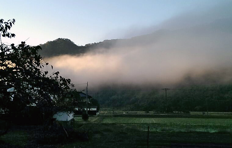 朝霧で夜があけて空気がとっても美味しい場所です。