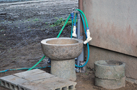 先日の足洗い場に使わなくなった石臼を置いてみました。